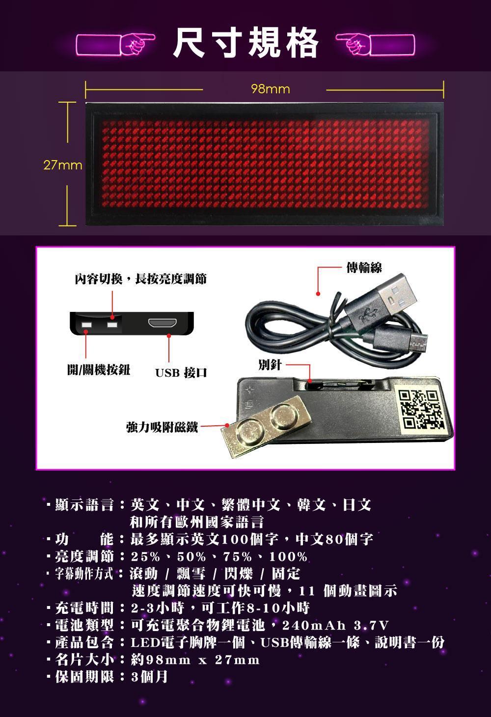 名稱: LED胸牌5字藍牙版